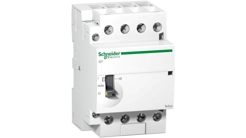 The Schneider Electric TeSys GY series is a modular dual tariff contactor which has a control voltage of 220 to 240 V ac. It is used in applications like lighting, heating and motor control. The type of connection for power and control circuit is through screw clamp terminal._x000D_