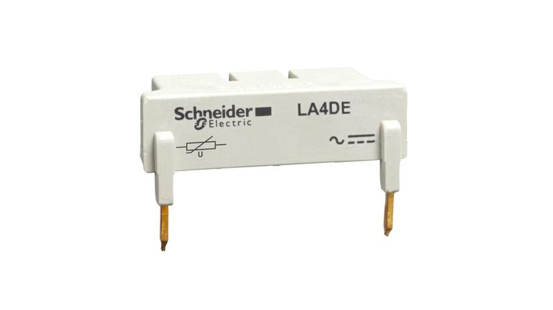 The Schneider Electric TeSys LA4DE series is a suppressor module compatible with LC series which has control circuit voltage of 24 to 48 V ac. It has varistor peak limiting suppressor technology. The device has ambient operating temperature from -25 to 55 °C._x000D_