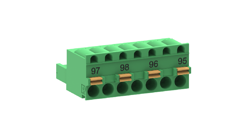 The Schneider Electric terminal block is rated for 600VAC voltage and 10A operating current. It has 4 pins and belongs to overvoltage category III._x000D_