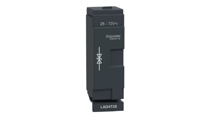 The Schneider Electric suppressor module for contactors. It provides a bidirectional peak limiting diodes protection limiting the transient voltage to 2 Uc max. Clip-on front mounting, overall size of the contactor is unchanged._x000D_