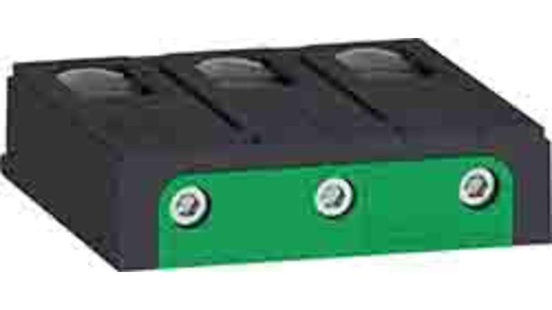 The Schneider Electric LAD9 TeSys GV4 - EverLink terminal block. Connections - terminals EverLink BTR screw connectors. Its an cable connector connection accessory which comes with various rated current options._x000D_