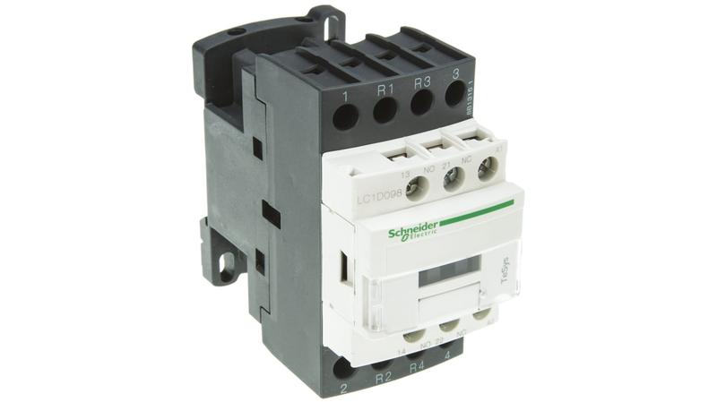 The Schneider Electric LC1D098F7 model is a 4 pole contactor featuring a 110 V ac operating coil, with an AC-3 full load current rating of 9 A.