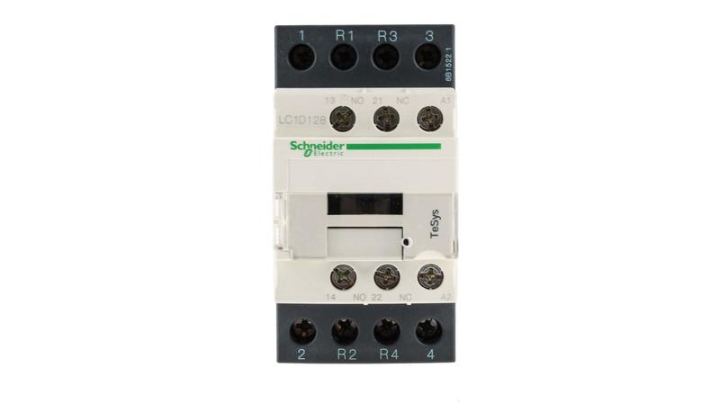The Schneider Electric LC1D128P7 model is a 4 pole contactor featuring a 230 V ac operating coil, with an AC-3 full load current rating of 25 A.