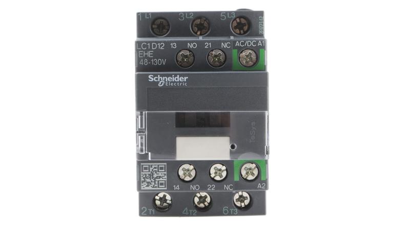 Schneider Electric LC1D TeSys D Contactors Range_x000D_ TeSys D Contactors from Schneider Electric combine long mechanical and electrical life to offer a high reliable contactor. The range has been designed for integration in control systems and can be used to create motor starters for any type of application. The TeSys D contactors offer quick simple setup while maintaining compliance with international standards._x000D_ Features and Benefits_x000D_ • Typically, applications include resistive loads and motor control_x000D_ • Highly reliable_x000D_ • Excellent quality_x000D_ • TeSys D Green contactors keep the same high resistance to shock and vibration as TeSys D, their coils offer a wider control voltage band and a lower permanent consumption_x000D_ • Built-in auxiliary contacts for added switching capability_x000D_ • Screw connections: IP20 finger-safe terminals with both North American and International terminal markings_x000D_ • Can be panel mounted with screws or DIN Rail mounted_x000D_ • Bidirectional peak limiting diode suppressor to protect the coil_x000D_ • Easily installed accessories_x000D_ • Flexible control circuit to suit a wide range of applications_x000D_ What does the utilisation category AC1 and AC3 mean for the TeSys contactors?_x000D_ Contactor utilisation categories define the current making and breaking values, based on the type of load to be controlled and the operating cycle conditions._x000D_ AC-1: This applies to all AC devices with a power factor of at least 0.95. Example of use: resistive load, heating, distribution._x000D_ AC-3: This applies to squirrel cage motors where breaking occurs while the motor is running. Example of use: all squirrel cage motors, lifts, escalators, conveyors, bucket elevators, compressors, pumps, mixers, air conditioning units._x000D_ What accessories are available?_x000D_ • Auxiliary contact blocks with serrated wiping action_x000D_ • Front mount dust tight auxiliary contact blocks_x000D_ • Pneumatic time delay blocks_x000D_ • Transient voltage surge suppressors_x000D_ • Interface modules and electronic timers_x000D_ • Mechanical latching blocks_x000D_ Is the TeSys D range a double break pole type contactor?_x000D_ Yes, the TeSys D range uses linear translation movement that provides double breaking of the poles.