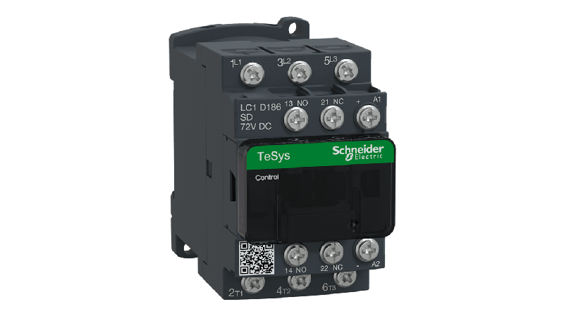 The Schneider Electric contactor for motor control applications. It provides a low consumption coil with electronic control. For operating rates until 3600 cycles per hour and environments until 60°C, it procures high reliability and durability. It is compact and has DIN-rail mounting or screw fixing._x000D_ Ring-lug terminals_x000D_ Easier to install and operate with multi-standard screws_x000D_ Improved fire resistance, and dustproof auxiliaries