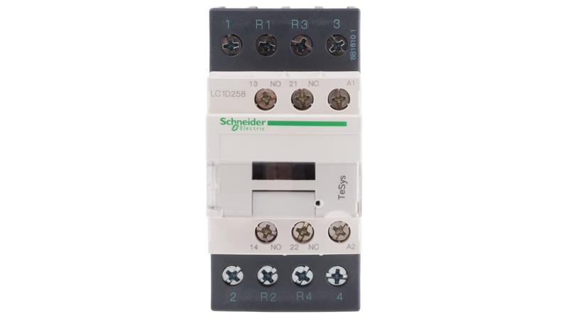 Schneider Electric TeSys LCD1 Contactors_x000D_ TeSys D Contactors from Schneider Electric combine long mechanical and electrical life to offer a high reliable contactor. The range has been designed for integration in control systems and can be used to create motor starters for any type of application. The TeSys LCD1 contactors offer quick simple setup while maintaining compliance with international standards._x000D_ Features and Benefits_x000D_ • Typically, applications include resistive loads and motor control_x000D_ • Highly reliable_x000D_ • Excellent quality_x000D_ • High resistance to shock and vibration_x000D_ • 4 pole contactors_x000D_ • Screw connections: IP20 finger-safe terminals with both North American and International terminal markings_x000D_ • Can be panel mounted with screws or DIN Rail mounted_x000D_ • Easily installed accessories_x000D_ • Flexible control circuit to suit a wide range of applications_x000D_ What does the utilisation category AC1 and AC3 mean for the TeSys contactors?_x000D_ Contactor utilisation categories define the current making and breaking values, based on the type of load to be controlled and the operating cycle conditions._x000D_ AC-1: This applies to all AC devices with a power factor of at least 0.95. Example of use: resistive load, heating, distribution._x000D_ AC-3: This applies to squirrel cage motors where breaking occurs while the motor is running. Example of use: all squirrel cage motors, lifts, escalators, conveyors, bucket elevators, compressors, pumps, mixers, air conditioning units._x000D_ What accessories are available?_x000D_ • Auxiliary contact blocks with serrated wiping action_x000D_ • Front mount dust tight auxiliary contact blocks_x000D_ • Pneumatic time delay blocks_x000D_ • Transient voltage surge suppressors_x000D_ • Interface modules and electronic timers_x000D_ • Mechanical latching blocks_x000D_ Is the TeSys D range a double break pole type contactor?_x000D_ Yes, the TeSys D range uses linear translation movement that provides double breaking of the poles._x000D_ Approvals_x000D_ UL and CSA