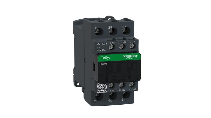 The Schneider Electric LC1D38BL model is a 3 pole contactor featuring a 24 V dc operating coil, with an AC-3 full load current rating of 38 A._x000D_