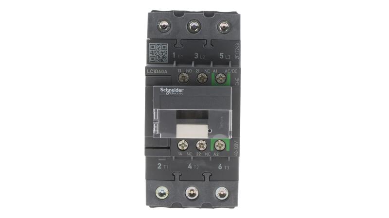 Schneider Electric LC1D TeSys D Contactors Range_x000D_ TeSys D Contactors from Schneider Electric combine long mechanical and electrical life to offer a high reliable contactor. The range has been designed for integration in control systems and can be used to create motor starters for any type of application. The TeSys D contactors offer quick simple setup while maintaining compliance with international standards._x000D_ Features and Benefits_x000D_ • Typically, applications include resistive loads and motor control_x000D_ • Highly reliable_x000D_ • Excellent quality_x000D_ • TeSys D Green contactors keep the same high resistance to shock and vibration as TeSys D, their coils offer a wider control voltage band and a lower permanent consumption_x000D_ • Built-in auxiliary contacts for added switching capability_x000D_ • Screw connections: IP20 finger-safe terminals with both North American and International terminal markings_x000D_ • Can be panel mounted with screws or DIN Rail mounted_x000D_ • Bidirectional peak limiting diode suppressor to protect the coil_x000D_ • Easily installed accessories_x000D_ • Flexible control circuit to suit a wide range of applications_x000D_ What does the utilisation category AC1 and AC3 mean for the TeSys contactors?_x000D_ Contactor utilisation categories define the current making and breaking values, based on the type of load to be controlled and the operating cycle conditions._x000D_ AC-1: This applies to all AC devices with a power factor of at least 0.95. Example of use: resistive load, heating, distribution._x000D_ AC-3: This applies to squirrel cage motors where breaking occurs while the motor is running. Example of use: all squirrel cage motors, lifts, escalators, conveyors, bucket elevators, compressors, pumps, mixers, air conditioning units._x000D_ What accessories are available?_x000D_ • Auxiliary contact blocks with serrated wiping action_x000D_ • Front mount dust tight auxiliary contact blocks_x000D_ • Pneumatic time delay blocks_x000D_ • Transient voltage surge suppressors_x000D_ • Interface modules and electronic timers_x000D_ • Mechanical latching blocks_x000D_ Is the TeSys D range a double break pole type contactor?_x000D_ Yes, the TeSys D range uses linear translation movement that provides double breaking of the poles.