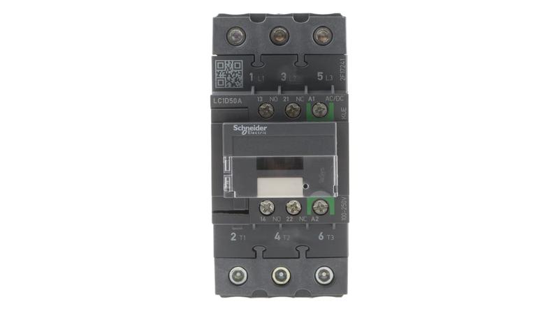 Schneider Electric LC1D TeSys D Contactors Range_x000D_ TeSys D Contactors from Schneider Electric combine long mechanical and electrical life to offer a high reliable contactor. The range has been designed for integration in control systems and can be used to create motor starters for any type of application. The TeSys D contactors offer quick simple setup while maintaining compliance with international standards._x000D_ Features and Benefits_x000D_ • Typically, applications include resistive loads and motor control_x000D_ • Highly reliable_x000D_ • Excellent quality_x000D_ • TeSys D Green contactors keep the same high resistance to shock and vibration as TeSys D, their coils offer a wider control voltage band and a lower permanent consumption_x000D_ • Built-in auxiliary contacts for added switching capability_x000D_ • Screw connections: IP20 finger-safe terminals with both North American and International terminal markings_x000D_ • Can be panel mounted with screws or DIN Rail mounted_x000D_ • Bidirectional peak limiting diode suppressor to protect the coil_x000D_ • Easily installed accessories_x000D_ • Flexible control circuit to suit a wide range of applications_x000D_ What does the utilisation category AC1 and AC3 mean for the TeSys contactors?_x000D_ Contactor utilisation categories define the current making and breaking values, based on the type of load to be controlled and the operating cycle conditions._x000D_ AC-1: This applies to all AC devices with a power factor of at least 0.95. Example of use: resistive load, heating, distribution._x000D_ AC-3: This applies to squirrel cage motors where breaking occurs while the motor is running. Example of use: all squirrel cage motors, lifts, escalators, conveyors, bucket elevators, compressors, pumps, mixers, air conditioning units._x000D_ What accessories are available?_x000D_ • Auxiliary contact blocks with serrated wiping action_x000D_ • Front mount dust tight auxiliary contact blocks_x000D_ • Pneumatic time delay blocks_x000D_ • Transient voltage surge suppressors_x000D_ • Interface modules and electronic timers_x000D_ • Mechanical latching blocks_x000D_ Is the TeSys D range a double break pole type contactor?_x000D_ Yes, the TeSys D range uses linear translation movement that provides double breaking of the poles.