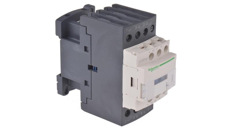 The Schneider Electric LC1DT32B7 model is a 4 pole contactor featuring a 24 V ac operating coil, with an AC-3 full load current rating of 32 A.