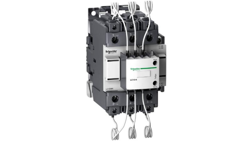 The Schneider Electric TeSys D contactor, 3 poles (3NO), for switching 3-phase capacitor banks up to 63kVAR@400V 50Hz (104kVAR@690V). It provides a 230V 50/60 Hz AC coil, 1NO+2NC instantaneous auxiliary contacts, with front mounted early make poles and pre-wired damping resistors for current limitation._x000D_