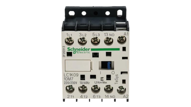 Protect your equipment from damage due to frequent switching with this contactor from Schneider Electric's TeSys range. It's designed for repeated opening and closing of contacts in high-current circuits and prevents faults by helping to suppress electrical arcing. With a maximum operating rate of 3600 cycles per hour, this device is suitable for high-use applications. The 3 NO poles let you safely switch a 3-phase load, and an auxiliary contact offers an extra level of protection against circuit overloads. For flexible use, this contactor can be used in resistive loads and non-inductive loads. Screw-clamp terminals provide secure electrical connections and DIN rail-mounting makes installation quick and straightforward._x000D_