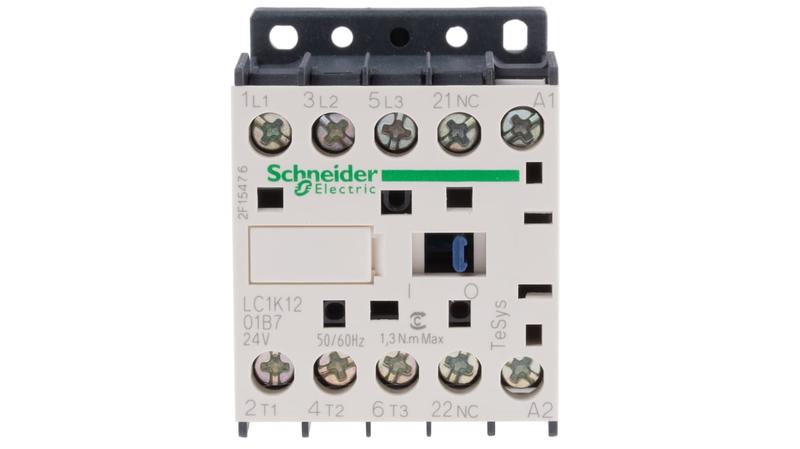 The Schneider Electric LC1K1201B7 model is a 3-pole contactor featuring a utilisation category of AC-1 and AC-3 and AC-4. The control circuit voltage is 24 V AC 50/60 Hz with 3 NO power pole contact composition. The rated operation current is 20 A (at <50 °C) at <= 440 V AC AC-1 for power circuit, 12 A at <= 440 V AC AC-3 for power circuit and 16 A (at <70 °C) at 690 V AC AC-1 for power circuit.