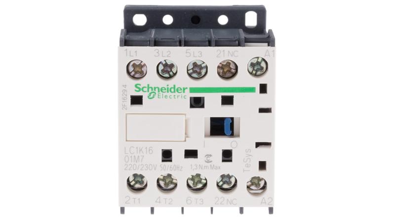 Schneider Electric 3 Pole Contactors_x000D_ These contactors, unlike relays, are specifically designed to connect to high current load devices. Used in larger-scale applications, Schneider Electrics contactors can be controlled remotely, specifically designed to switch a large amount of electrical power through its contacts._x000D_ These contractors feature varied switching voltages, many of the range feature screw clamp or a solder termination._x000D_ • Highly reliable_x000D_ • Excellent quality_x000D_ • Easily installed accessories_x000D_ What does the utilisation category AC1 and AC3 mean for the TeSys contactors?_x000D_ Contactor utilisation categories define the current making and breaking values, based on the type of load to be controlled and the operating cycle conditions._x000D_ AC-1: This applies to all AC devices with a power factor of at least 0.95. Example of use: resistive load, heating, distribution._x000D_ AC-3: This applies to squirrel cage motors where breaking occurs while the motor is running. Example of use: all squirrel cage motors, lifts, escalators, conveyors, bucket elevators, compressors, pumps, mixers, air conditioning units._x000D_ What accessories are available?_x000D_ • Auxiliary contact blocks with serrated wiping action_x000D_ • Front mount dust tight auxiliary contact blocks_x000D_ • Pneumatic time delay blocks_x000D_ • Transient voltage surge suppressors_x000D_ • Interface modules and electronic timers_x000D_ • Mechanical latching blocks_x000D_ Approvals_x000D_ CSA, UL, NEMKO, DEMKO, SEMKO, FIMKO_x000D_ Standards_x000D_ BS5424 Part 1/IEC 947, VDE 0660, NFC63 110