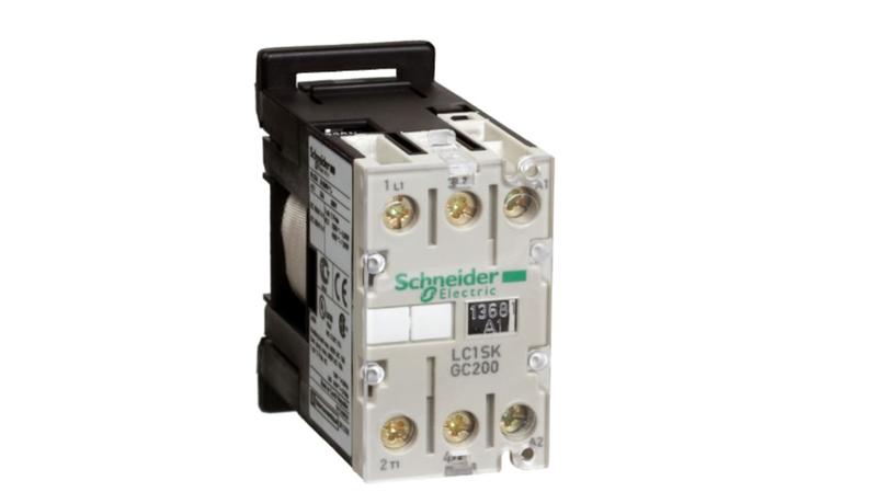 The Schneider Electric TeSys SKGC mini-contactor, 2 poles (2NO), for non-inductive load applications up to 20A/690V AC-1, and for 1-phase motor control applications up to 5A/690V AC-3. It provides a 24V 50/60Hz AC control circuit, a transparent protective cover to prevent front face access, connection by screw terminals._x000D_