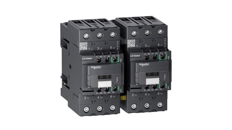 The Schneider Electric LC2D40AM7 is a LC2D series 3 pole TeSys Deca reversing contactor used for motor control._x000D_