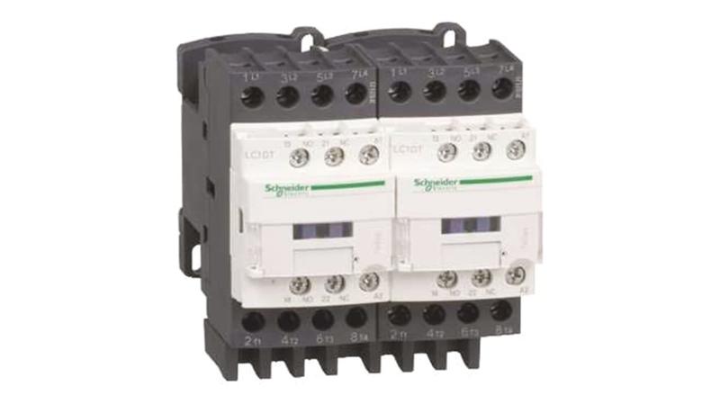The Schneider Electric LC2DT25BD is a LC2D series 4 pole TeSys Deca reversing contactor used for motor control._x000D_