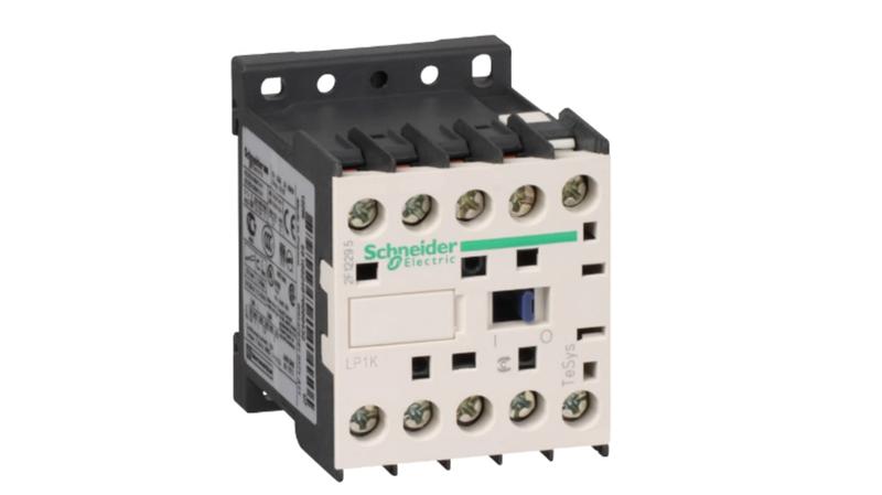 The Schneider Electric TeSys K contactor, 3 poles (3NO), for motor control applications up to 6A/690V AC-3 (2.2kW@400V). It provides a 24V DC coil with transient suppressor module, 1NC built-in auxiliary contact, connection by screw clamp terminals.. Very compact (45mm width), DIN-rail mounting or screw fixing. Multi standards certified (IEC, UL, CSA, CCC, EAC), Green Premium compliant (RoHS/REACh)._x000D_