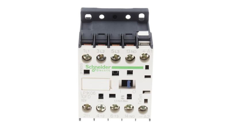 Schneider Electric 3 Pole Contactors_x000D_ These contactors, unlike relays, are specifically designed to connect to high current load devices. Used in larger-scale applications, Schneider Electrics contactors can be controlled remotely, specifically designed to switch a large amount of electrical power through its contacts._x000D_ These contractors feature varied switching voltages, many of the range feature screw clamp or a solder termination._x000D_ • Highly reliable_x000D_ • Excellent quality_x000D_ • Easily installed accessories_x000D_ What does the utilisation category AC1 and AC3 mean for the TeSys contactors?_x000D_ Contactor utilisation categories define the current making and breaking values, based on the type of load to be controlled and the operating cycle conditions._x000D_ AC-1: This applies to all AC devices with a power factor of at least 0.95. Example of use: resistive load, heating, distribution._x000D_ AC-3: This applies to squirrel cage motors where breaking occurs while the motor is running. Example of use: all squirrel cage motors, lifts, escalators, conveyors, bucket elevators, compressors, pumps, mixers, air conditioning units._x000D_ What accessories are available?_x000D_ • Auxiliary contact blocks with serrated wiping action_x000D_ • Front mount dust tight auxiliary contact blocks_x000D_ • Pneumatic time delay blocks_x000D_ • Transient voltage surge suppressors_x000D_ • Interface modules and electronic timers_x000D_ • Mechanical latching blocks_x000D_ Approvals_x000D_ CSA, UL, NEMKO, DEMKO, SEMKO, FIMKO_x000D_ Standards_x000D_ BS5424 Part 1/IEC 947, VDE 0660, NFC63 110