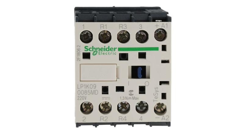 The LP1K090085MD is a miniature 4 pole contactor featuring a 220 V dc operating coil and an AC-3 full load current of 20 A.