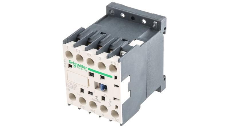The LP1K09008BD is a miniature 4 pole contactor featuring a 24 V dc operating coil and an AC-3 full load current of 20 A._x000D_