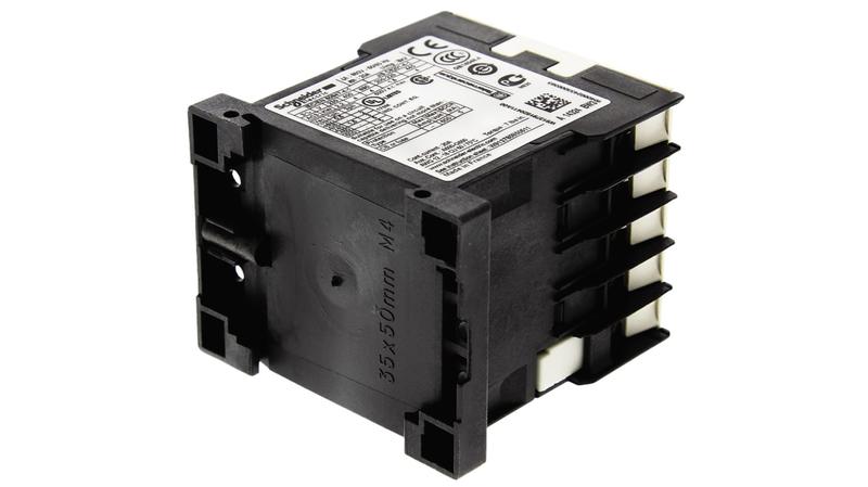 The LP4K09004BW3 is a miniature 4 pole low consumption contactor featuring a 24 V dc operating coil and an AC-3 full load current of 20 A.