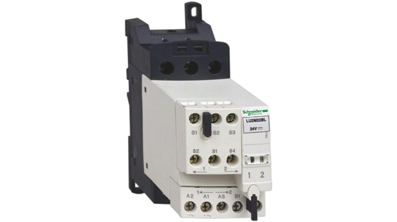 The Schneider Electric LU6MB0BL TeSys Reverser block for side mounting contactor used for motor control._x000D_
