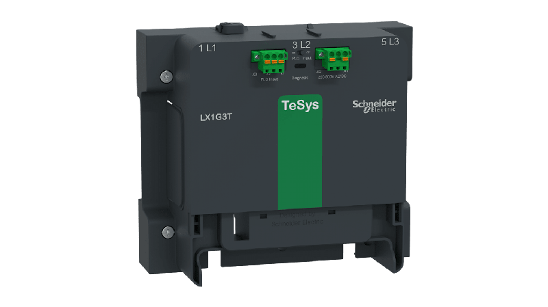 The Schneider Electric control module for TeSys giga contactor. Coil designed for less energy consumption and wider voltage band-width, connection by spring terminal. It allows contactor operation with high AC-3 operating rates until 600 cycles/hour and environments until 60°C. Control module has connectors for connecting the coil control A1, A2 circuit, pole status and diagnostic signalling circuits._x000D_