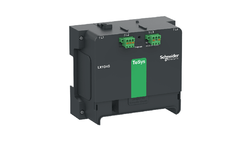 The Schneider Electric control module for TeSys giga contactor. Coil designed for less energy consumption and wider voltage band-width, connection by spring terminal. It allows contactor operation with high AC-3 operating rates until 600 cycles/hour and environments until 60°C. Control module has connectors for connecting the coil control A1, A2 circuit, pole status and diagnostic signalling circuits._x000D_ Advanced Version_x000D_ 4 pole