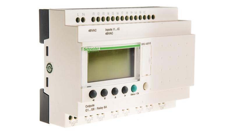Schneider Electric | Zelio Logic SR2/SR3 Series | Logic Module_x000D_ The Zelio Logic SR2/SR3 series by Schneider Electric provides an alternative to solutions based on cable logic or specific cards. This range is compact, with Modbus or Ethernet communication extension modules compatible with the device. Signal the device remotely, or on-site, you can control the module on your terms._x000D_ Features and benefits:_x000D_ • Easily programmable interface, safe programming allows you to run coherence testing, simulations and monitoring modes to ensure complete control over your devices._x000D_ • A real-time clock built in_x000D_ • 6 to 10 outputs & 4 to 10 inputs (depending on model) allowing you versatility in the number of stand-alone devices you need to input/output to._x000D_ • Low power consumption with a generous supply voltage ranging from 12 V dc up to 24 V dc (see specifications for model specific voltage)._x000D_ • DIN Rail or panel mounting with screw terminals depending on your need._x000D_ • Cost-effective in reducing space needed with the compact models vs. other basic modules._x000D_ • Intuitive programming with Zelio Soft 2 software using function block diagram (FBD): this has 32 pre-programmed functions, 7 Grafcet functions, 6 logic functions._x000D_ OR_x000D_ contact language (LADDER): 12 pre-programmed functions._x000D_ • LCD backlight display for easier accessibility in darker areas._x000D_ • 10 years back-up (EEPROM memory)_x000D_ Applications - where can I use it?_x000D_ Logic modules are useful for when you need to perform a process without human intervention, therefore the list is not limited. Logic Modules may even be connected to other Logic Modules for example. Below you'll find some typical applications:_x000D_ • Control systems for smaller machinery/replacement of controls_x000D_ • Lighting management_x000D_ • Heating and air conditioning controls_x000D_ Schneider Electric Zelio Logic 2 Smart Relay - Additional Info:_x000D_ Schneider Electric now offers a new generation of expandable intelligent relays, offering substantial advantages in flexibility and functionality. Zelio Logic 2 Smart Relay is the optimum solution to control tasks such as automating small machines within industry, lighting, HVAC and access control within buildings._x000D_ With the small footprint, simple programming, powerful control functions and the possibility of changing or modifying the program in case of changed application requirements, it offers great savings in space and price compared to other options._x000D_ Choose between two new series - Compact and Modular. The Compact series is not expandable and is available with the following I/O block sizes: 10 I/O, 12 I/O and 20 I/O._x000D_ The Modular series is available with 10 and 26 I/O basic units and is expandable up to 40 I/O with the latter. Apart from this flexibility both new series are programmable using FBD, ladder and Grafcet SFC programming languages._x000D_ User friendly design for easy programming and operation, either directly from the module using the navigation buttons or via Windows based software.