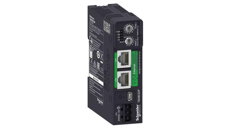 The Schneider Electric smart communication module with RJ45 port ethernet has a current consumption of 200mA at 24V DC. It has self speed adaption and provides half duplex, full duplex and autocrossing(MDIO)._x000D_