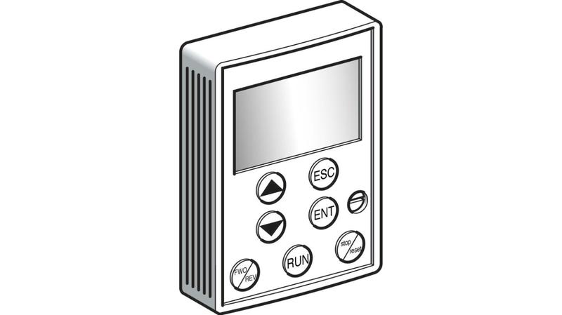 Door mounting terminal sealed to IP65. Allows access to configure, set-up and locally control the drive (complete with cable, seal and screws for door mounting)._x000D_