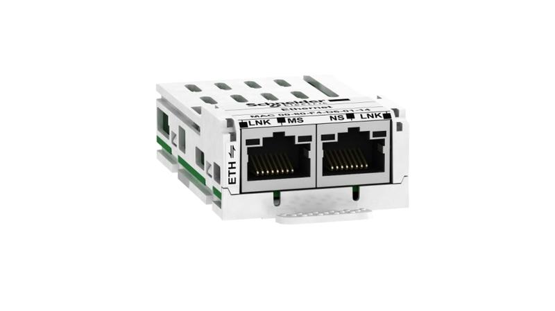 Use this inverter module from Schneider Electric with your Lexium 32 or Altivar 32 machine to improve the communication and management of automated systems. It's a cassette-style device that clips into your device, so installation is quick and easy. Two ports and two RJ45 connectors are on hand to join it to your network. Using Ethernet TCP and IP communication protocols and a 10 or 100Mbps data transmission rate, this unit enables you to make last-minute decisions on your drive._x000D_