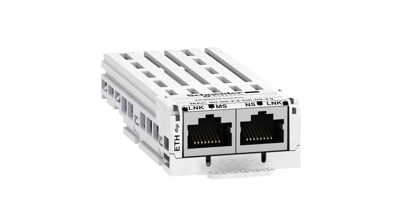 The Schneider Electric communication module has two RJ45 and ethernet-IPModbus TCP electrical connection. It has half duplex and full duplex exchange mode and SNMP agent for Ethernet IP communication service._x000D_