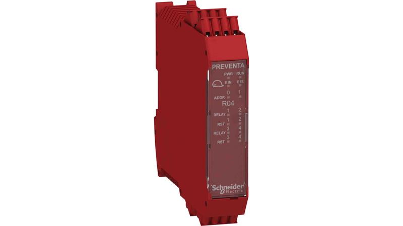 The Schneider Electric Preventa XPSMCM expansion modules with 4 independent safety relay outputs and the corresponding 4 inputs for the external feedback contacts (EDM).The relay can be configured according to Category 1, 2 and 4 architectures._x000D_