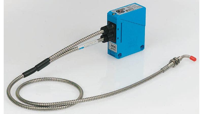 Heavy duty fibre optic sensor module and a choice of through-beam or direct-detect glass fibre optic cables with stainless steel jackets._x000D_