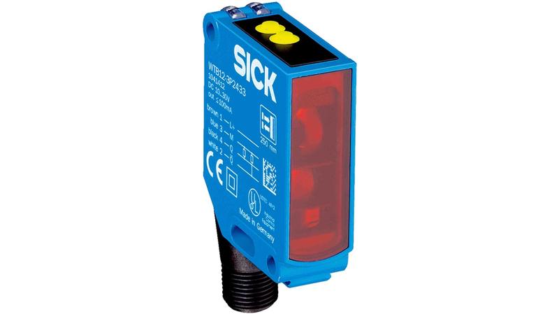 The Sick W12-3 are small photoelectric sensors with background suppression. It has a rectangular light emission housing with LED as its light source. It has a double teach-in button adjustment. The wavelength is of 640 nm. The photoelectric sensor has a PNP switching output and a complementary output function. It has a light/dark switching mode. It is quipped with a 4-pin, M12, male connector. It has a switching frequency of 1,500 Hz._x000D_