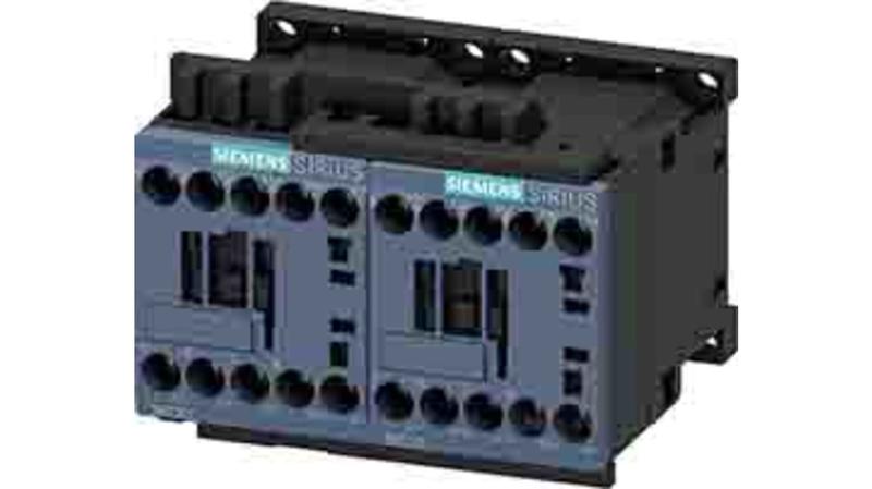 The Siemens reversing contactor assembly has size S00 screw terminal electrical and mechanical interlock reversing contactor assembly SIRIUS 3RA23 for switching motors including change of rotation direction._x000D_
