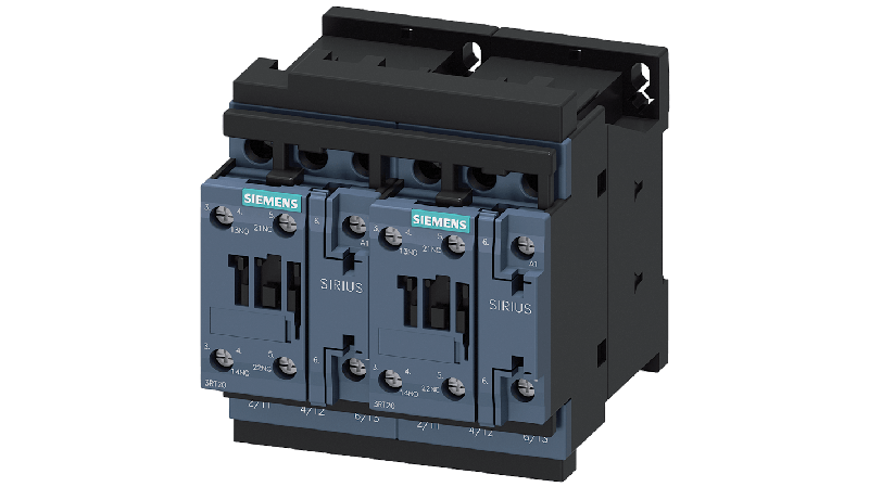 The 3RA23 reversing contactor assembly is a proven and factory-fitted combination of two 3RT2 contactor of the same output which are already fully wired and are interlocked both mechanically and electrically. They are climate-resistant, approved for worldwide use (e.g. IEC and UL/CSA) and are IE3/IE4-ready._x000D_
