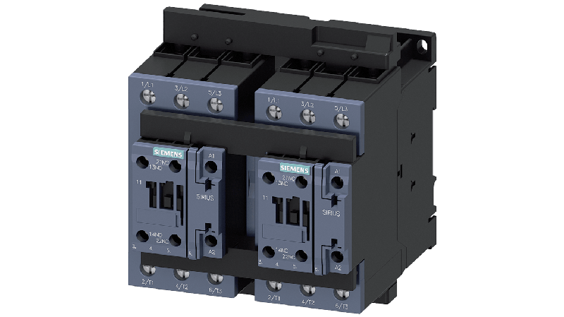 The 3RA23 reversing contactor assembly is a proven and factory-fitted combination of two 3RT2 contactor of the same output which are already fully wired and are interlocked both mechanically and electrically. They are climate-resistant, approved for worldwide use (e.g. IEC and UL/CSA) and are IE3/IE4-ready._x000D_