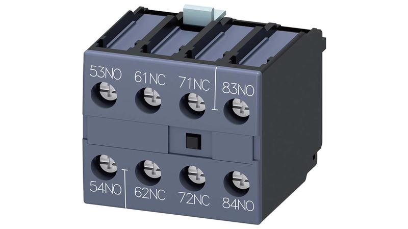 The Siemens contactor relay and power contactor is front-side auxiliary switch has 2 NO contacts, 2 NC contacts. It has screw terminal type of electrical connection for auxiliary and control current circuit._x000D_