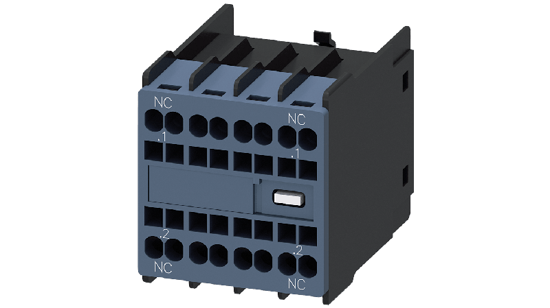 The Siemens Electronic contactor auxiliary switch with 2 NC. The auxiliary switch SIRIUS 3RH29 used for the expansion of auxiliary contacts in the control circuit. The front-mounted 3RH29 auxiliary switches can be installed on 3RT2 contactors and 3RH2 contactor relays without the need for tools, regardless of size._x000D_