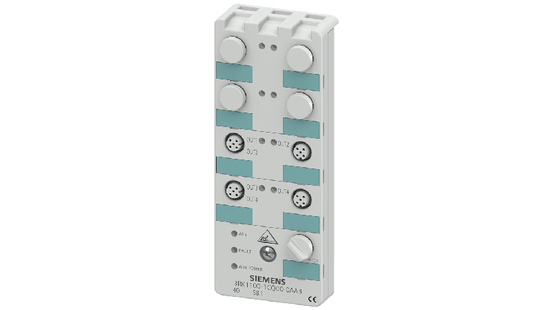 The Siemens 3RK1100-1CQ00-0AA3 is a AS-i compact module K60 digital 4 DQ, IP67 4 x output, maximal 4 A for all outputs 4 x M12 socket Y-II assignment Mounting plate 3RK1901-0CA00 must be ordered separately_x000D_