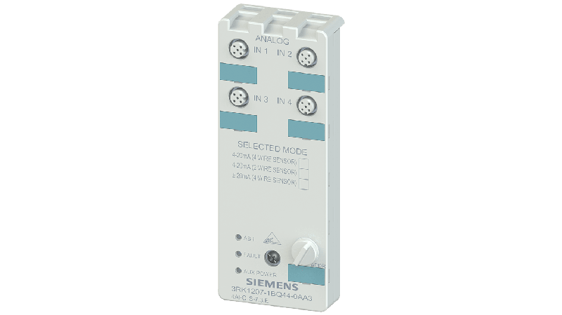 The Siemens 3RK1207-1BQ44-0AA3 is a AS-i compact module K60 analog 4 AI, IP67 4 x input, current 4..20 mA, +/- 20 mA for 4-wire sensors 4 x M12 socket Mounting plate 3RK1901-0CA00 must be ordered separately_x000D_