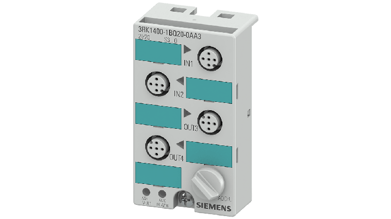 The Siemens 3RK1400-1BQ20-0AA3 is a AS-i compact module K45 digital 2 DI/2 DQ, IP67 2 x input, maximum 200 mA 2 x output, maximal 3 A for all outputs 4 x M12 socket Mounting plate 3RK1901-2EA00 or 3RK1901-2DA00 is to be ordered separately_x000D_