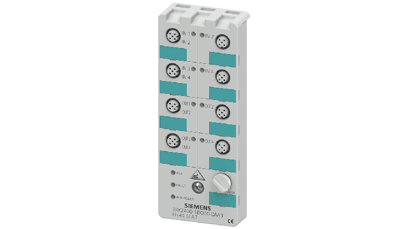 The Siemens 3RK2400-1DQ00-0AA3 is a AS-i compact module K60 digital A/B slave, 4 DI/4 DQ, IP67 4 x input, 4 x output, for all outputs 8 x M12 socket Y-II assignment Mounting plate 3RK1901-0CA00 must be ordered separately_x000D_