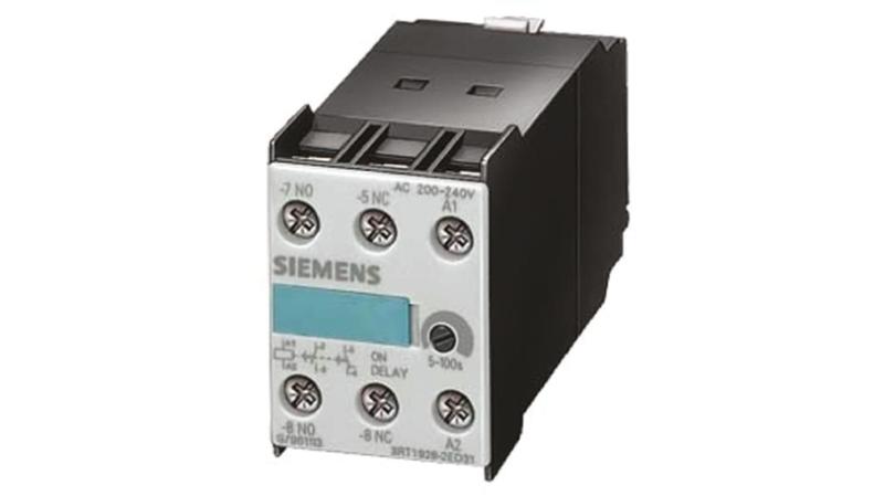 A selection of SIRIUS Auxiliary Contact blocks with adjustable time delay and Timer Relays with on and off delay.