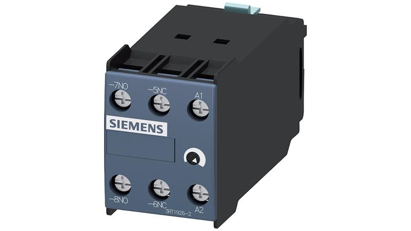 The Siemens solid-state time-delayed front-side auxiliary switch has 0.05 to 1 sec time range._x000D_