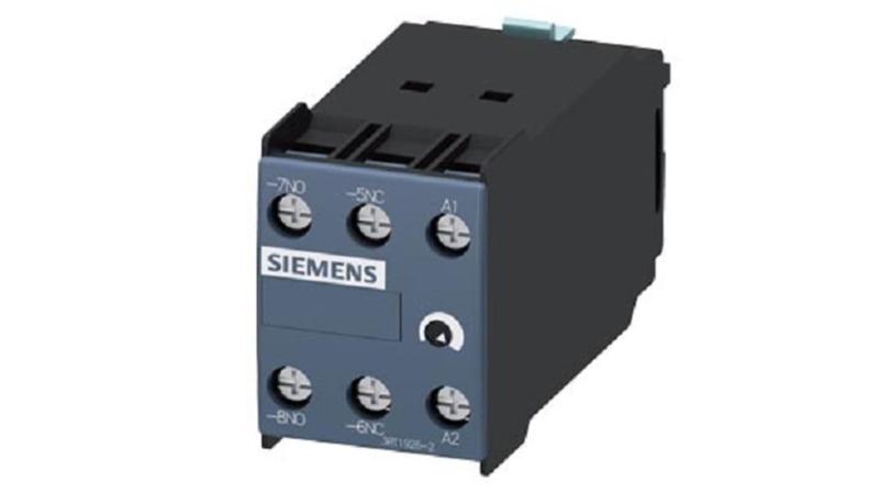The Siemens Auxiliary switch is a solid-state time-delayed front-side auxiliary switch has time range 0.5 to 10 seconds with 24 V AC/DC control supply voltage at 50 to 60 Hz frequency with 1NO and 1NC contact, OFF delay without control signal also has IP20 protection class._x000D_
