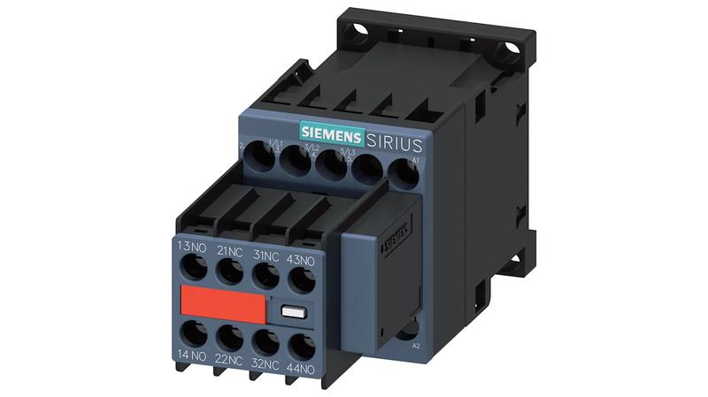 The Siemens Power contactor, AC-3 9 A, 4 kW / 400 V 2 NO + 2 NC, 230 V AC 50 / 60 Hz, with plugged on varistor, 3-pole, Size S00 Screw terminal Captive auxiliary switch Power contactor SIRIUS 3RT2 for switching motors._x000D_